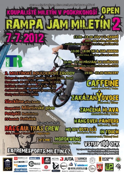 Dne 7.7.2012 proběhne 2. ročník Miletínských boulderových závodů v rámci akce Open rampa jam miletín 2012 v městečku Miletín v Podkrkonoší. Doražte poměřit své síly!