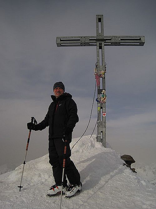 Fyzická špička nášho družstva – rýchliky Julo a Lafo si dávajú rannú rozcvičku na Similaun 3 603 m.  My ostatní  sa držíme pri zemi a túžobne ich hypnotizujeme z chaty až na vrchol. Za dve a pol hodiny, vrátane luxusného zjazdu, sú späť  a pokračujeme spoločne do sedla Tisenjoch. V prudkom úseku a snahe vypnúť si lyže sa celá zamotám a robím kotrmelec dozadu. Našťastie do kameňov a tak neletím niekam do údolia. I toto malé zavrávoranie mi však stačí nato, že na Finailspitze 3 514 m by ma v tej chvíli nikto nedotiahol ani párom volov. Beata trpiaci odtlakmi tak čaká so mnou v sedle, a mužská časť družstva vystupuje bez lyží na vrchol za neuveriteľných 30 minút. Divotvorný pocit mi kompenzuje zjazd, križujeme ľadovec Hochjochferner. Päť oblúčikov pauza a znova, nohy nevládzu, pohlcuje nás hmla a odporná difúzia, krátke stúpanie na chatu a hurá: Schonen Aussicht Hut 2 846 m nás víta s otvorenou náručnou. Lafo sa chopí gitary a dynamické rytmy „Hej Macejko“ udivujú aj Rakušákov.
