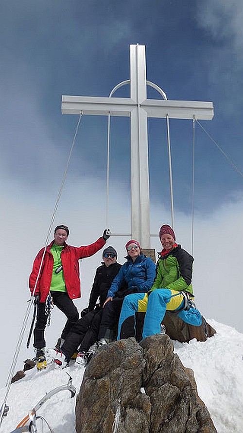 Zázračné uzdravenie, som plná energie a sily. Asi pomaly začínam tušiť, že to prežijem. Váľajúce oblaky strieda lenivé slnko. Pospevujem si „stúúúpanie je zo všetkého najkrajšie, stúpam rááád, je to na mně znááát“. Teda až do úseku, kde si musíme vypnúť lyže, lebo svah pred nami je taký strmý, že doňho narážame čelom. Bojím sa, ale oproti prasačine na Weißkugelu je to rýchlovka.  Trhliny na ľadovci Taschferner sú hlboko pod snehom. Prichádzame do sedla tesne pod vrchol  Wildspitze 3 774 m kde sa to hemží skialpinistami, ktorí už majú výstup za sebou. Dojedáme posledné zásoby, obúvame mačky, berieme cepín a za pol hodinu si veselo kvíkame sami pri kríži. Zjazd je divoká jazda, berieme  to najkrajtšou cestou do Ventu - zlaňujeme feratu. V lete 20 minút, v zime 2 hodiny. Stáli pri náš všetci svätí, pod nástupom sme si všetci vydýchli. Zjazd je perfektný, terén po dlhej chvíli striedajú zjazdovky s poslednými zbytkami snehu.  .  Na parkovisku skáčeme meter dvadsať, že sme to úspešne zvládli a do sýtosti sa objímame.