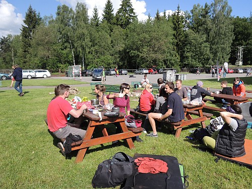 Kolik lidí na Beal petrohradské padání 2014 vlastně přijelo, lze jen těžko spočítat. Můj odhad 500 lidí vycházel z asi 170-ti aut. Tak třeba krát tři. Nepočítaje ty dodávky s deseti mládežníky na palubě. Výjimkou nebyla narvaná auta, z nějž si jeden člověk koupil průvodce a zbytek šel s ním do skal. Asi těžko lze u těchto lidí hovořit o podpoření akce. Všem ostatním velký dík! Přijely matky kojících dětí (mezi kojením práskaly 7A!, že Katko), objevil se tam človíček z Ghany… Jasně, remcali, že to bolí, že tam nejsou chyty, že rizoto se nedá jíst…všechno pravda, ale té krásné pozitivní energie byla řádná porce! Díky, vzpomeneme si na ní, až budeme balancovat na narychlo stlučeném žebříčku v gumákách a drbat nadbytečné byliny. S tím vstupným si to musíme nějak zařídit sami, tím se, vy poctiví, netrapte.