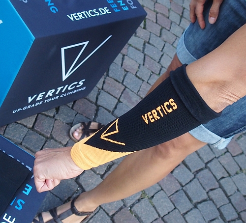 Ona totiž firma Vertics přišla se zázračnými VERTICS.SLEEVES neboli vertikálními rukávy. Zní to možná super odborně, avšak skutečnost je poměrně triviální. Jsou to z pružné tkaniny utkané návleky na předloktí, ne nepodobné těm, co nosí naše babi proti křečovým žilám.