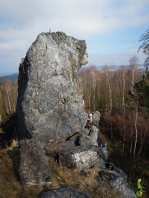 Hop boulderuje na Šumavské věži