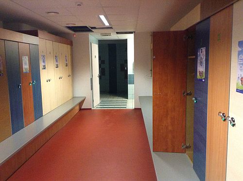 Zázemí sprch a šaten je, podobně jako na jiných moderních stěnách, prostě dokonalé.
