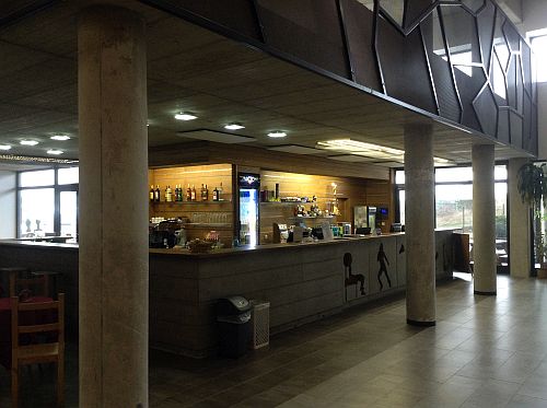 U restaurace je bar. Na stěně se chystá i lezecký obchod
