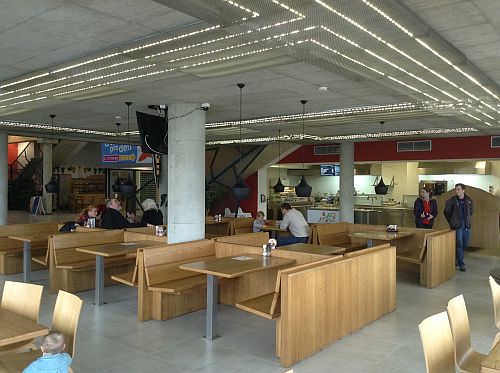 V prostorách budovy najdete rozlehlou a vkusně řešenou restauraci