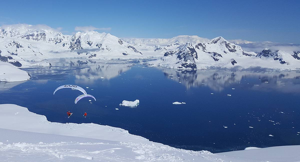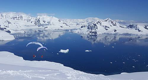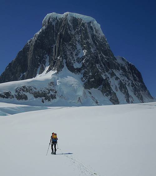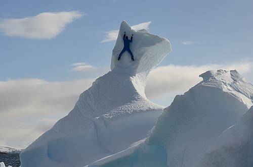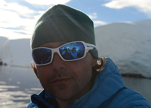 Což okomentoval ihned Galas, který mne doprovází na cestách jako stín a chytá přitom filmové obrázky z mých výprav: „ Chudák Mirek, dostal černého Petra“. Tak nevím, jak si to mám vyložit… Ať tak, či onak, já na to hážu bobana. Nicméně počasí přálo a na nebi se odrážela jen sytá modř. Jedná se o kouzelný odstín, který zatím žádný fotostroj nedokázal věrně vykreslit.  Věřte, či ne, ale druhého místa, s takovouto oblohou, krom Antarktidy není. Však toť můj názor a nechávám prostor i mudrcům. Od lodě nás odváží malý člunek připomínající rybářskou bárku pro chytání kapříků z Vltavy. Na břehu nasazuji sněžnice a Míra je za tuleního lyžníka. Po dvou hodinách šontání sněhovou plání mezi trhlinami, shazujeme batohy. Jsme oba dva splavení, přičemž oblečení jsme sundali, co šlo.  Na Antarktidě a vedro? Ku…rňa, kdo by to čekal, že. Je poledne a slunce topí na plné obrátky. Pocitově může být s odrazem od sněhu, kolem patnácti stupňů nad nulou. Fůůů, pařák jak hovado. Vzápětí mě napadá titulková zpráva v bulváru „Polárníci Uvaření ve vlastní šťávě“. Jeden velký paradox a zároveň problém zdejšího lezení. Každý z nás už od školních lavic, má zafixováno spojovat zmrzlý kontinent s extrémním chladem a nikoliv horkem. A přesto, není tomu pouze tak. Počasí na rozhraní pevniny a moře, může zaznamenat v jednom dnu děsivé rozdíly z plusových teplot, až k nízkým hodnotám hluboko pod nulou. Dále je třeba počítat i s masivním přívalem sněhu, deště a krutého uragánu. Jednoduše všechna protivenství a ještě v té nejhorší podobě.