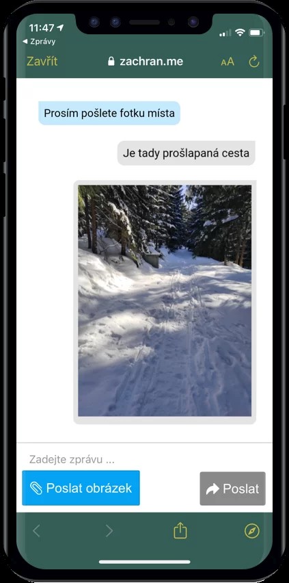 Tým aplikace Záchranka připravil ve spolupráci s Horskou službou novou funkcionalitu –vylepšený přenos polohy, nebo fotky z místa nehody/události zasahujícím posádkám horských záchranářů.