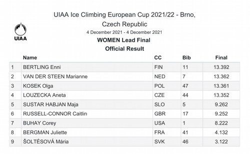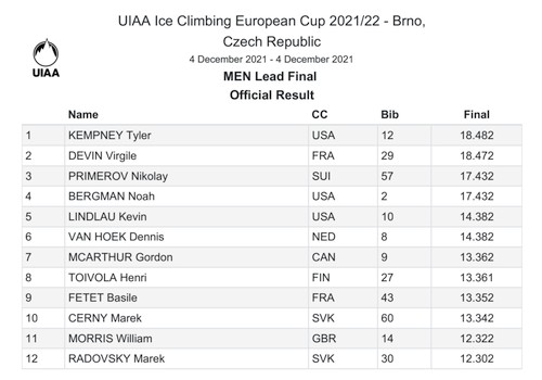 V sobotu 4.12. 2021 proběhnul na pilíři pod Brněnskou přehradou další ročník MČR v ledolezení na obtížnost - drytoolingu. Už potřetí byl tento závod součástí UIAA Evropského poháru.
