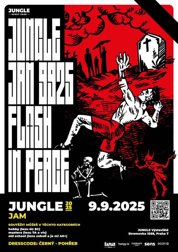 Sezóna naší výstavní boulderovky se chýlí ke konci. Přichází čas se s ní rozloučit. Ne se slzami, ale s pořádným výkonem, smíchem a finálním pokusem i topem. Tentokrát tě čeká Jungle Jam v černé – ne hippie kvítí, ale závoj, klobouk, kravata nebo krajka. Lezení jako poslední pocta Výstavku. Oslava konce a zároveň nového začátku.