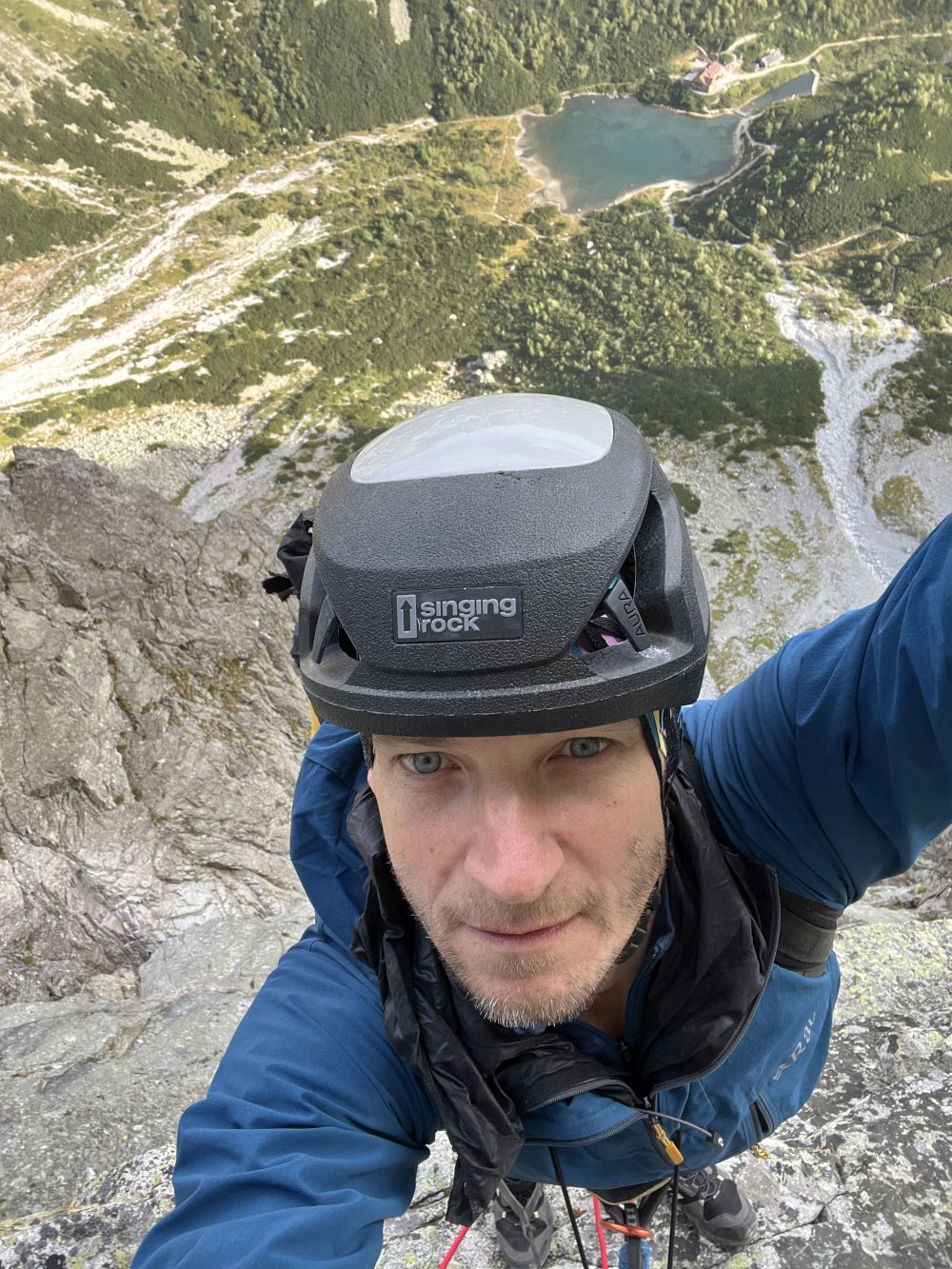 Ok, takže je potřeba zabojovat. Chybí pár délek, ale kumulovaná únava začíná dost působit. A to nemluvím o tom, že už nevydržím, resp. pata/kotník v lezečce. Nůž na nařezání lezčky nebo brufen ale nechávám zatím na horší situaci. Mám totiž ještě sebou nějaký kofein… Vrchol. K tomu není třeba nic psát…