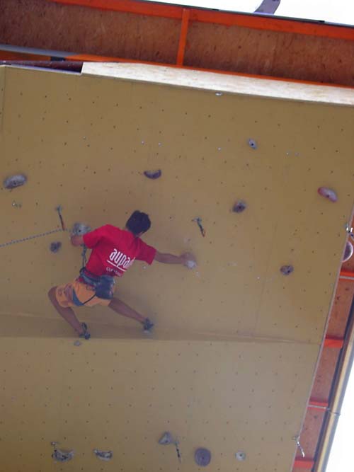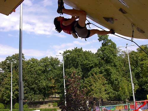 S nástrahami nástupového bouldra sa nevyrovnal Oškrda z Brna a skončil na treťom chyte. Kubovi Kováčikovi v ťažších krokoch zjavne ešte chýba sila a i Tomáš Fides nezvládol prechod z malej lišty do pravého bekhendu uprostred cesty. Dvanásťročný Maťo si za neskrývanej radosti odniesol piaty flek v mužoch a druhý v junioroch. Určite potešil i Mira Pialu zástupcu a sponzora Triopu v ktorých Maťo liezol. Obdivovateľ krásnych žien Maslo (Belica), doplatil na slabšiu vytrvalosť a roztiekol pod stropom. Možno mu pekné štvrté miesto a osobná masérka dopomôže k ďalším úspechom. Streso sa vyložene trápil s každým krokom a prvý chyt v strope sotva tečoval. Kraken liezol až príliš na istotu a v dlhom strope mu došli sily, štyri chyty od topky. Cesta k víťazstvu sa tak otvorila Humpimu. Liezol elegantne, pod stropom sklepol, podržal Krakenov poisťovací chyt a skočil po ďalšom. V divácky obľúbených pretekoch na rýchlosť, si Humpi svoj šťastný deň vychutnal do konca. Najskôr určite najrýchlejší Kraken nešťastne vypadol so Stresom. Vo finále Streso – Humpi, vystresovaný Streso, ktorý tesne viedol netrafil vypínač a Humpi ten deň slávil tretie víťazstvo. Blaváci sa s cenami poriadne vytiahli a do Bystrice za tri prvé, dve druhé a jedno tretie miesto putoval malý športový obchod. Chalanom gratulujem a verím v postupné zlepšenie.