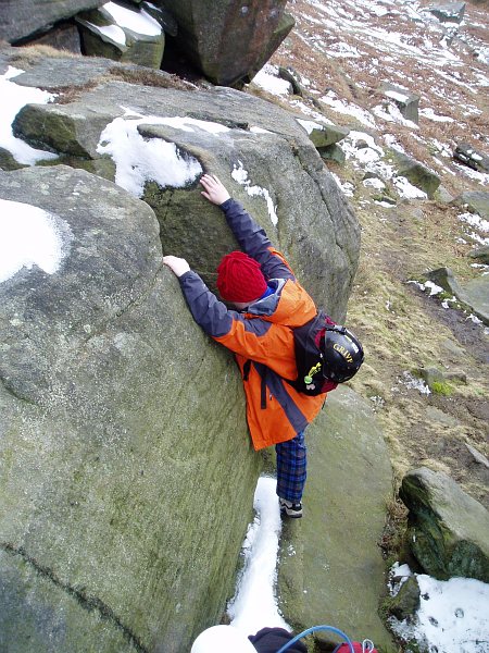 Ta hrana kterou Mysak leze se jmenuje Don E4 5c, Kdyz ji vsak polezes z druhe strany tj. zleva tak to je The Archangel E3 5b. Zminovana Ulysses'Bow E6 6b je videt primo za Mysakem.