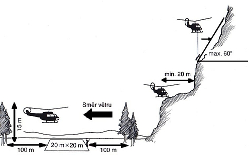 - přistávací plocha bez překážek, vedení atd. minimálně 25x25m, porost nesmí přesáhnout 30cm