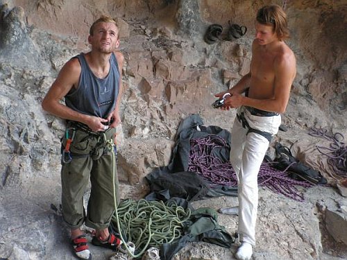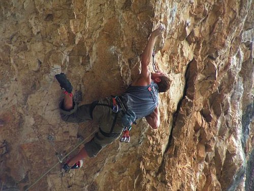 Tomáš se rozlezl na 7a+ a 7c+. Potom následovala cesta do sektoru Ventanas, kde se nachází cesta Pata negra. Okouknul směr cesty, lehce chyty (asi 5 minut), bez dalekohledu (prý by ho to mohlo zmást) a šel na to. Když se leze na on sight, leze Tomáš na maximum , a tak ani moc neváhal a proběhl 3/4 cesty jako by lezl 8a. V odpočinkovém místě vyklepal, zabojoval na hraně v bouldru a bylo vylezeno. Tomáš to okomentoval: "No, asi jsem tu cestu stoprocentně trefil a lezl vše jak se má".