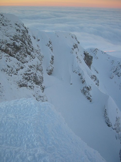 Ustálené chladnější sluneční počasí, příhodná lavinovka a prodlužujícími se dny s nočními mrazíky  jsou příhodné pro levostraný jižní sjezd Zagelkogelu v pohoří Hochswab slabší čtverkové obtížnosti.