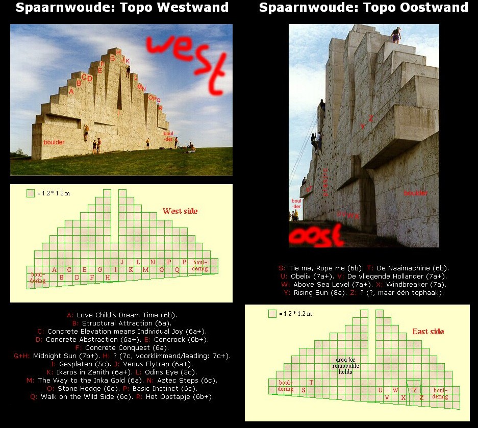 Z holandského serveru Climbing.nl (holandsky) Spaarnwoude – stěna (klimmur)