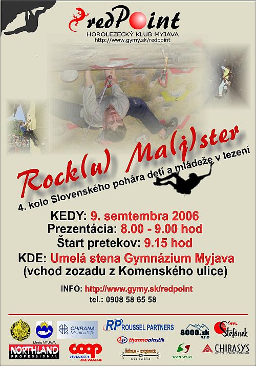 Bližšie info: http://www.gymy.sk/redpoint tel: 0908 586 558, e-mail redpoint@zoznam.sk