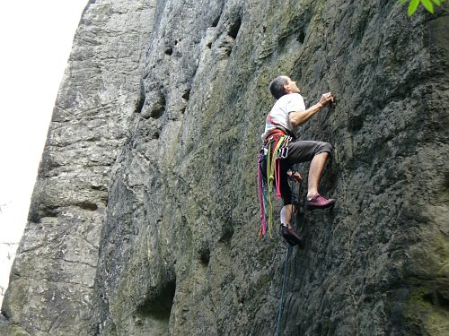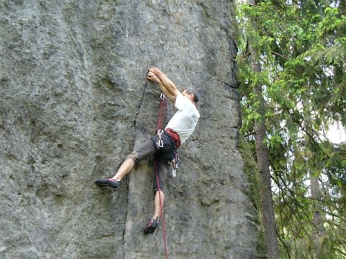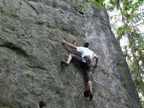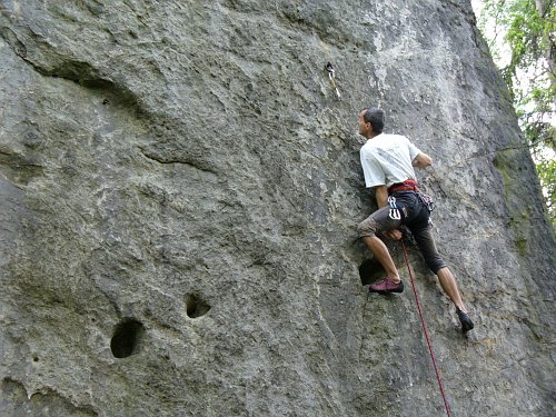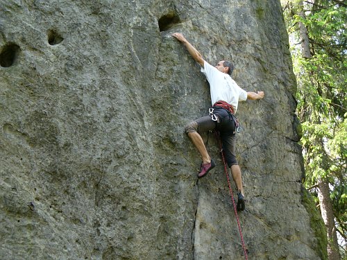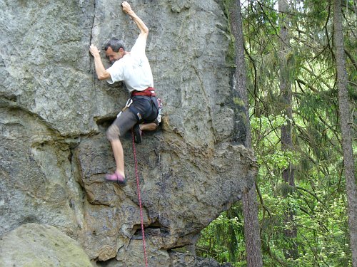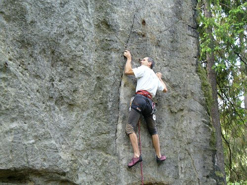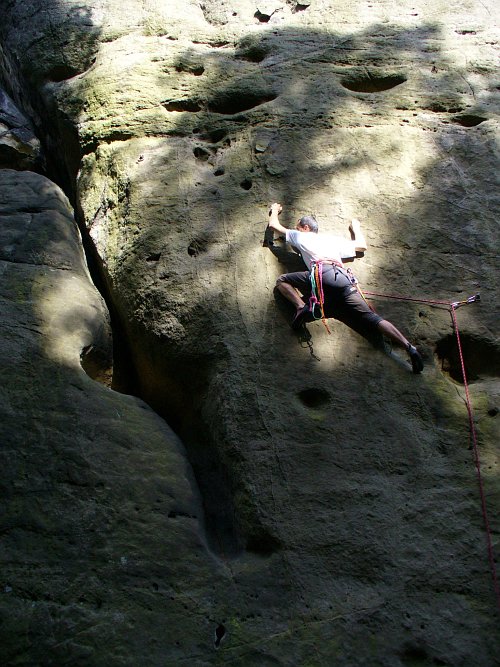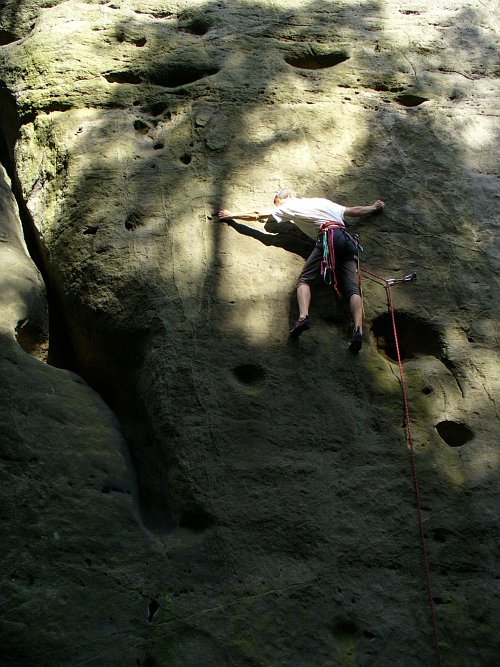Heimatland IXc, RP Xa. Pěkná stěna v levé části SZZ stěny s tvrdým bouldrem od prvního kruhu. Zbytek už jde. Hodí se silný prst.