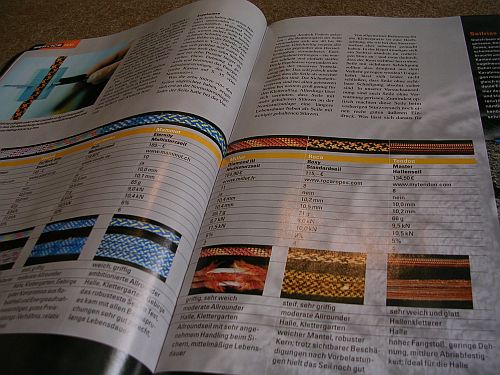 a webové stránky nového německého lezeckého časopisu zaměřeného na lezení v halách a na skalkách Climb!, v jehož posledním 4. čísle je test lan.