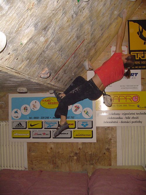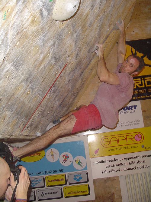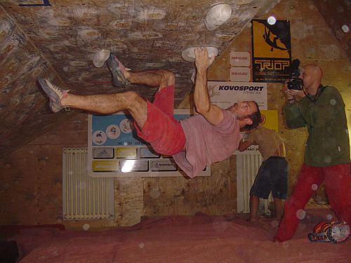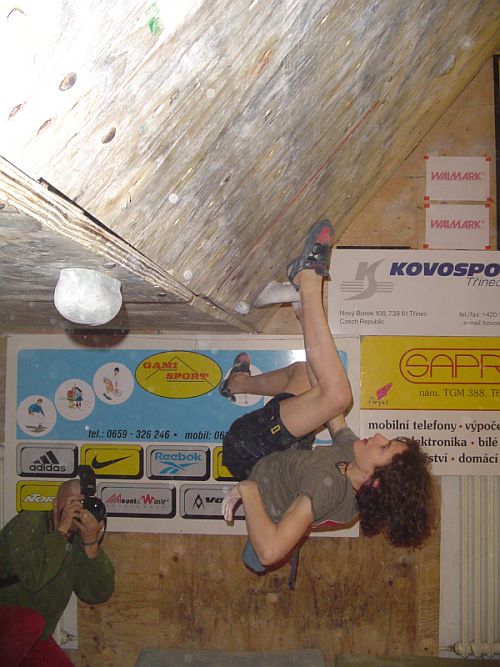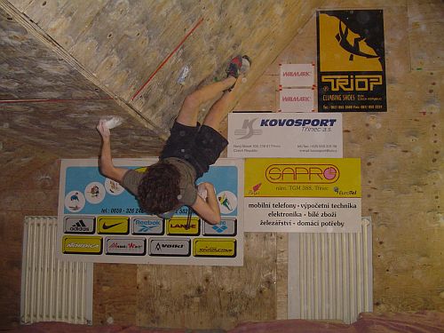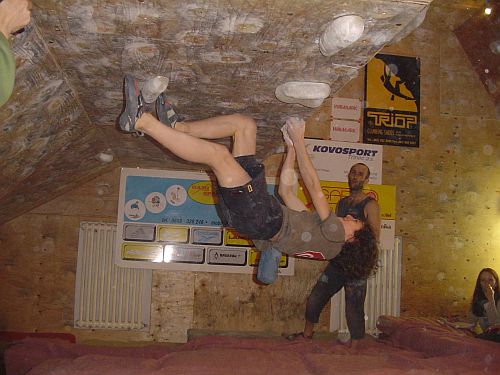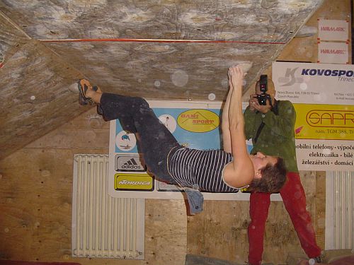 smNejmladší versus nejstarší. V tomto tempu se nesl celý závod alespoň v mužích. Třináctiletému Adamovi skvěle sekundoval třicetičtyřletý Radovan Souček. Adam exceloval zejména na pátém bouldru, kdy dlouho padal z malé lišty a zachytával se na madle pod sebou než dal top. Ženám vládla Saša Gendová, která nedala jen bouldr v kvalifikaci.
