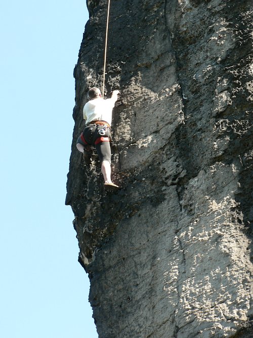 Ale abych se vrátil zpět k jarním stěnám. Až v předposlední aprílový víkend se počasí natolik umoudřilo, že jsme se nadržení jak římští legionáři po ročním tažení vypravili prozkoumat následky dlouhé zimy přímo do terénu. Mračna a chlad nenutily k vyhledávání prosluněných stěn, slunce nebylo k nalezení. Byl však nejvyšší čas zjistit, jak se srovnáme pískařskou technikou a co asi tak budeme moci od nadcházející sezóny očekávat.