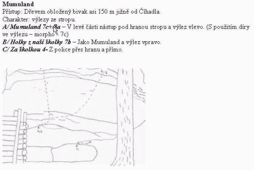 Domnívám se, že různých věcí vzniká v poslední době víc, než stačím postřehnout, proto vás prosím, abyste jakékoliv informace o nových boulderech poslali na mojí adresu arada@volny.cz (pokud možno přístup, popisku kudy a jak, já se potom pokusím vyrobit nějaký nákres a jakmile budu mít nějaký ucelenější výsledek - šup s ním na Lezce. Ukázka by se měla pohybovat někde tady.