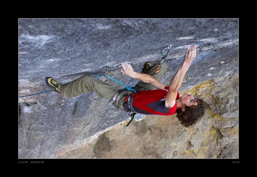 Adam k  přelezu potřeboval osm pokusů a použil jiné sekvence, než prvovýstupce a prvopřelezce Markus Bock.