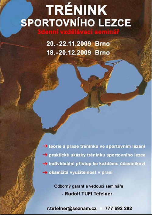 Další seminář Trénink sportovního lezce tentokrát třídenní pořádá ve dvou termínech nyní na podzim Rudolf Tefelner, autor knížky Trénink sportovního lezce.