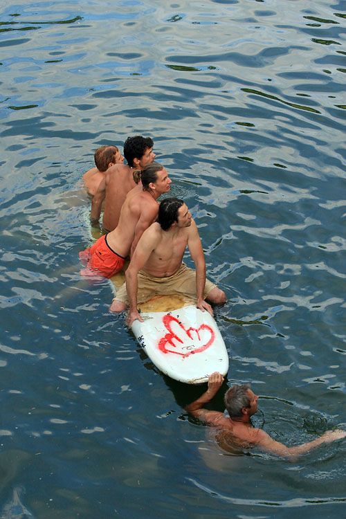 Nástup skokem (11m) nebo lodí do suchého startu (suché jen ruce), zde erární Mg.