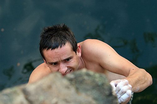 Zde Jirka Sedláček dolaďuje nejtěžší kvalifikační boulder