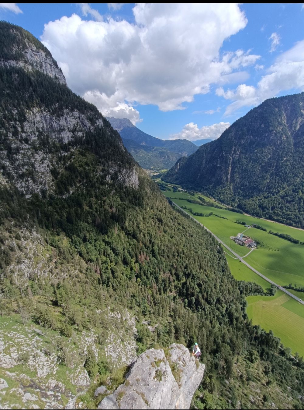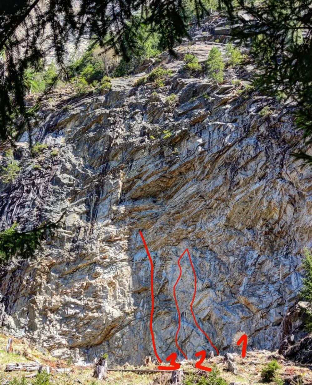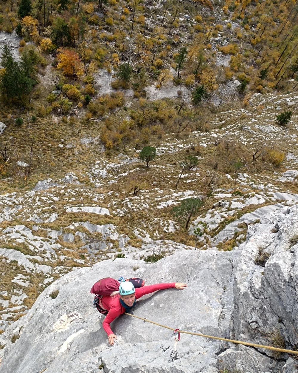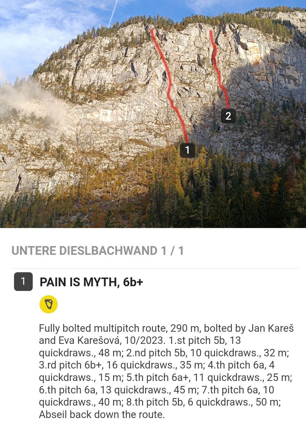 Před více jak rokem jsem měl těžký úraz, zlámal jsem si obě nohy, tak chvilku trvalo, než jsme mohli někam vyrazit. Na podzim touto dobou jsme to zkusili, museli jsme najít oblast s lehčími cestami a ne zas tak daleko. Výběr byl Untere Diesbachwand. Cca hodinku do kopce, já to šel s hůlkama bez batohu určitě dýl:-) a pak 100m lezení okolo 6a. Když jsme se vraceli, já už mohl jen stěží couvat, popředu to nešlo, tak bylo hodně času se i pokukovat po nových směrech a tam jsem to uviděl:-)