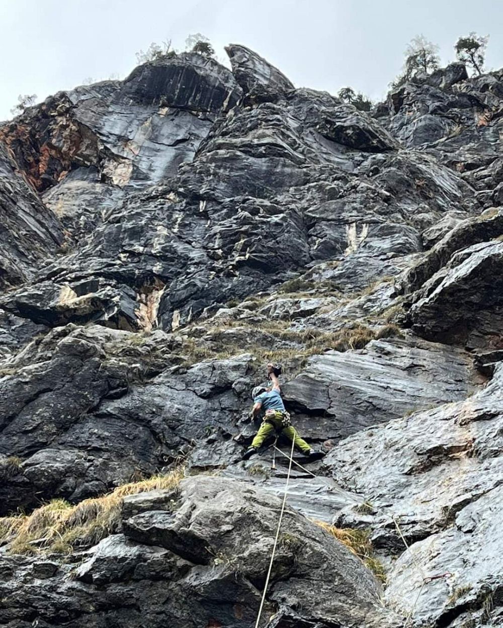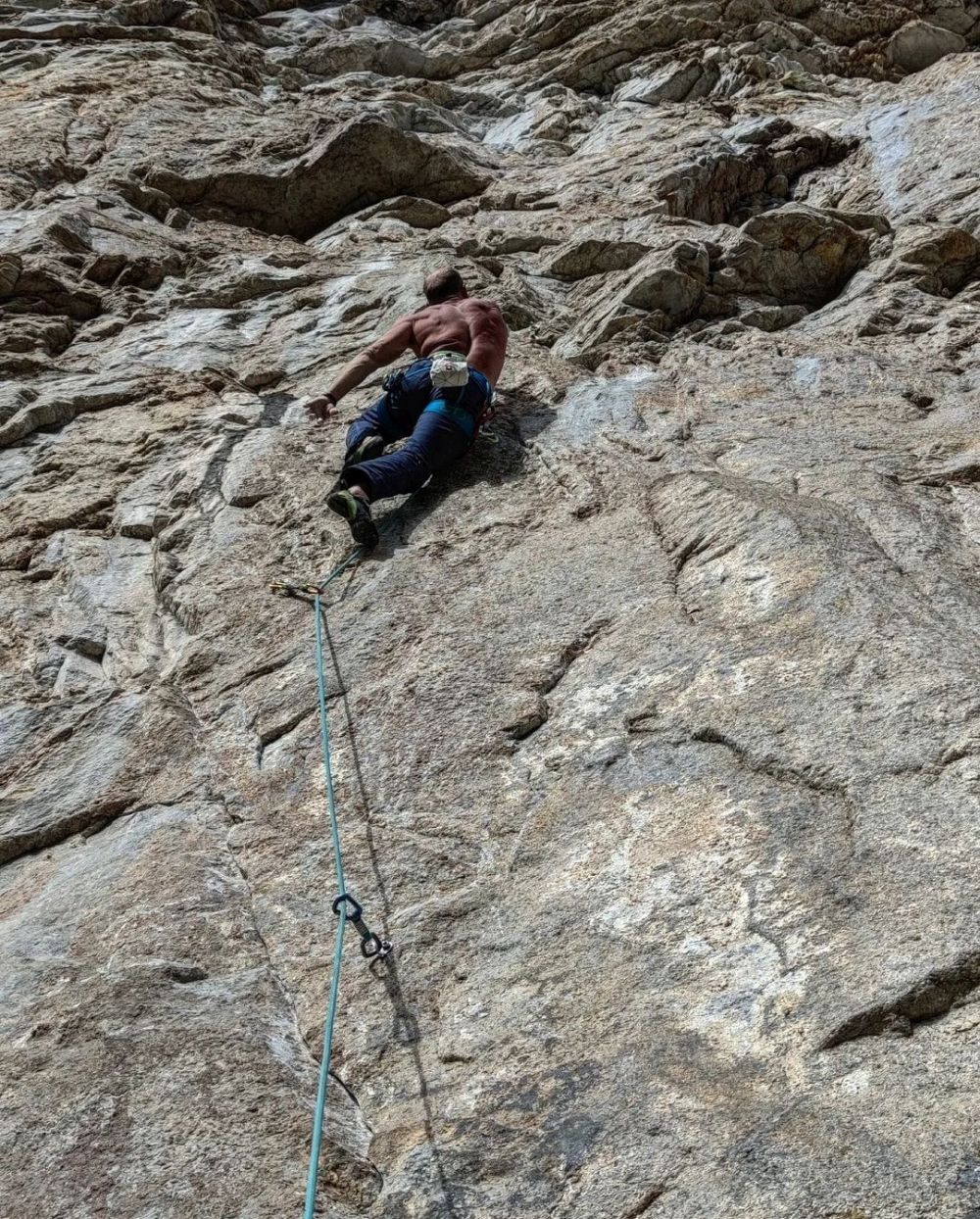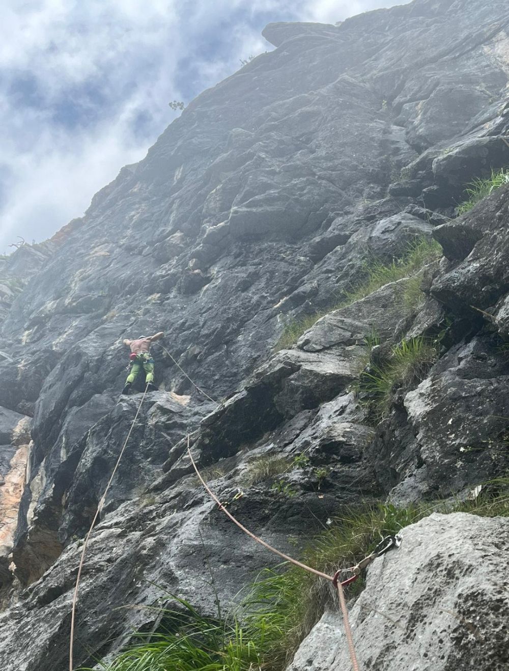 Další zájezd byl v létě, navrtali jsme další 2 délky a déšť nás sundal dolů. Další den jsme dodělali tuto cestu do předposlední délky a nebyla už energie, tak dolů.