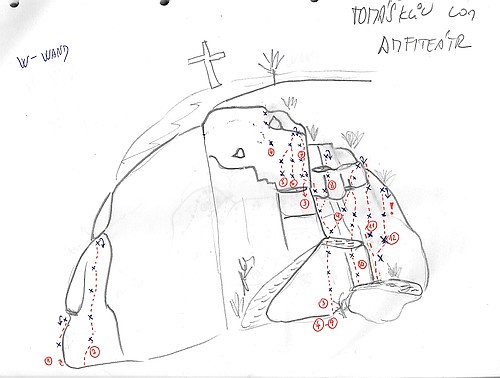 Na západ orientovaná stěna je odpoledne na slunci, ve stínu zhruba do 13 hodin. Nabízí řadu pěkných lehčích výstupů a trochu těžší silové pecky s převážně sportovním zajištěním. Občas jsou ve stěně volné kameny a přilba je více než doporučitelná. Přístup z obce Korno dle mapky.
