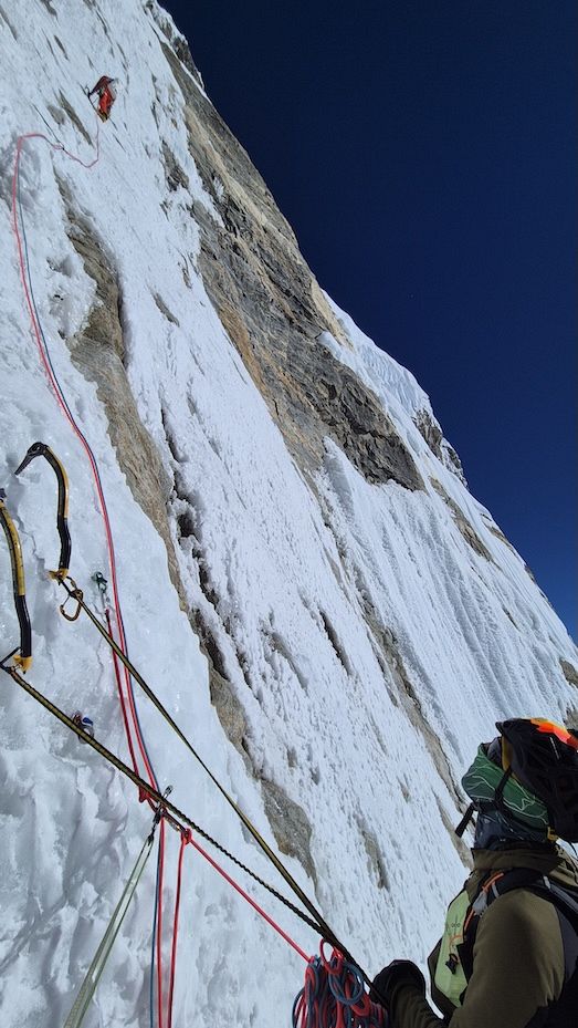 Trojice bivakovala ve výšce 6900 metrů bez stanu a spacáku. „Byla to divoká a nepředvídatelná cesta,“ popsal Barmasse ve zprávě, kterou nám poslal na Lezce. „Na začátku Adam zvracel a byl vyčerpaný, ale rozhodli jsme se jít spolu dál. Postupně jsme opustili původní linii z pokusu Katalánců z roku 2016 a zvolili přímější, náročnější směr.“