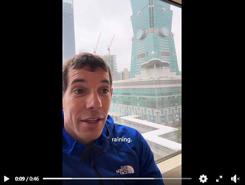 Americký lezec Alex Honnold odložil dnes kvůli dešti svůj solo výstup na taiwanský mrakodrap Taipei 101 na zítřek stejného času. Tedy pokud počasí dovolí, bez jištění na něj poleze v neděli 25. ledna 2026 od 09:00 dopoledne taiwanského času. Informoval o tom na sociálních sítích.
