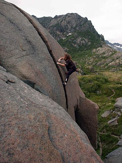 Červen 2005. Partička lezců v jiném složení opět opouští republiku směr polární kruh a ještě o kus dál… Z původního osazenstva jsem zbyl pouze já. Asi jedinej jsem věřil, že tam musí být taky někdy pěkně, což kupodivu tentokrát vyšlo. Ze čtrnácti dní pobytu bylo deset takový vedro, že na místních „plážích“ bylo rekreantů jak uprostřed hlavní sezóny na Riviéře.