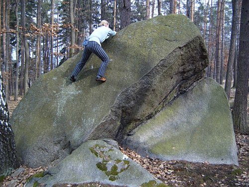 První objevený kámen této oblasti, viditelný už z vlaku. Je skoro jisté, že se na něj lezlo už dříve, ale do dnešní doby se tu žádné stopy po lezení nedochovali.