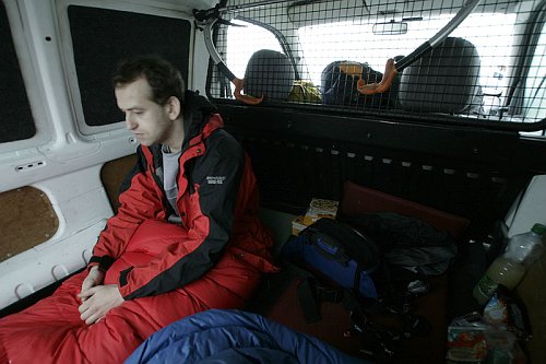 Ve středu odpoledne jsem nabral Honzu na nádraží v Hradci Králové. Pokračujeme na Svitavy. Dále na Hranice, Makov, Žilinu, Martin až skoro do Popradu. O půlnoci jsme však zastavili na benzínce s nonstopem. Přespali jsme v autě. Chvíli okolo slídila šlapka s pasákem. Ráda by se dostal k nám. Já se však pevně zapřel nohama do dveří. Měla smůlu. Ten den nic nebylo. Žádný kšeft.