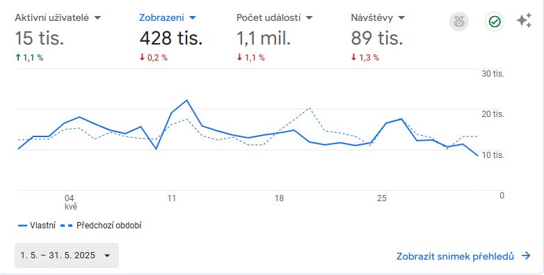 Podle Google Analytics měl Lezec.cz v květnu 2025 tuto čtenost: