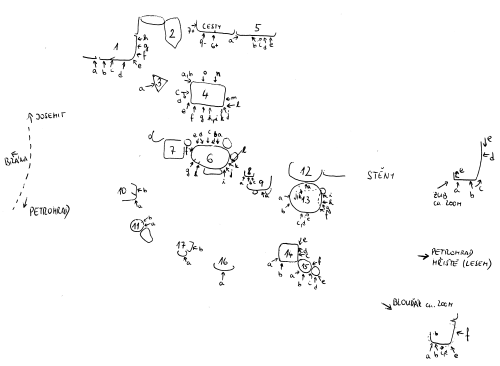 Mezi nejhezčí a zejména nejoriginálnější věcičky patří určitě "No Hand", který i přes svůj velmi trefný název vede stropem. Nočník je snad nejhezčí šutr, který jsem na bouldrování viděl. Leze se po převážně slušných chytech, které jsou však daleko od sebe a ty stupy! Flaying boy je jeden z nejbláznivějších skoků, který je po několika pokusech sám o sobě schopen člověka pěkně vyždímat, vedle toho "Orbit" je ultraoriginální snad dvacetimetrový traverz po oblé hraně, jehož vyčištění dalo pořádně zabrat. Projekty označené "víc než 8" budou skutečné perly bouldringu. Kdo rád lišty, zařádí si v kolmici na Nejťáku, silové lezení ve stropě nabízí Delfín, ačkoli Pinožení je poměrně zdatný technický prstolam. Je tu prostě všechno, momentálně asi osumdesát hotových kusů + potenciál na projekty. Celkově se v petrohradských lesích skrývá určitě kolem tisícovky směrů, z nichž zhruba dvě stovky jsou hotové. Přeji hezké polezeníčko a až se bude chtít projít, zavítejte na sousední kopec, tzv. Bránu, kde najdete další desítky panenských šutrů.