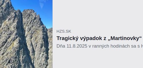 Tragicky skončil včera pád polského horolezce na hřebenovce Martinka na Gerlachovský štít ve Vysokých Tatrách. Informovala o tom slovenská horská služba: ... celý článek
